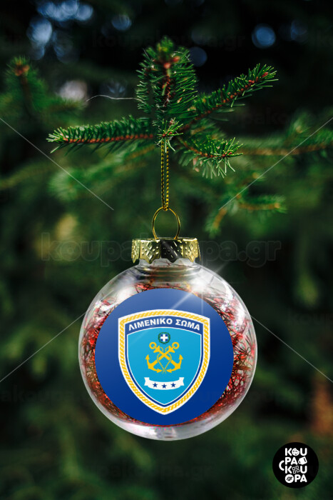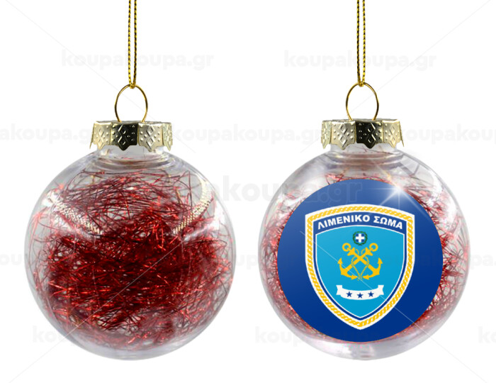 Hellenic coast guard, Transparent Christmas tree ball ornament with red filling 8cm