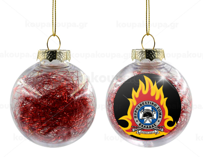 Πυροσβεστικό σώμα Ελλάδος σκούρο, Transparent Christmas tree ball ornament with red filling 8cm