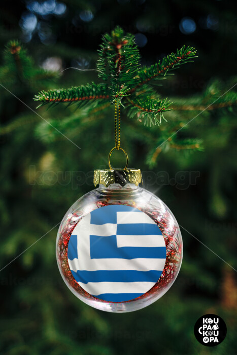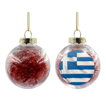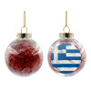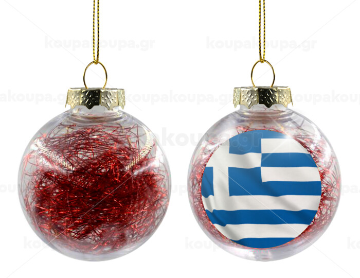 GREEK Flag, Transparent Christmas tree ball ornament with red filling 8cm