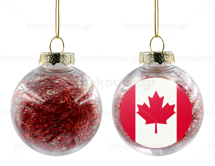 Canada flag, Transparent Christmas tree ball ornament with red filling 8cm