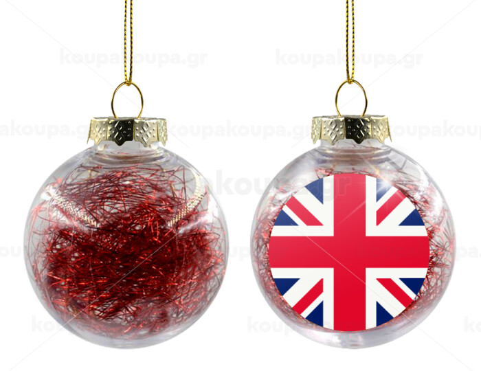 England flag, Transparent Christmas tree ball ornament with red filling 8cm
