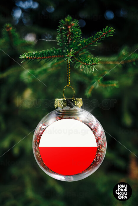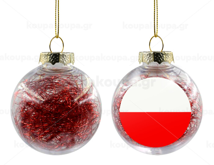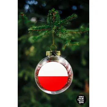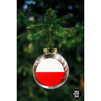 Poland flag, Transparent Christmas tree ball ornament with red filling 8cm