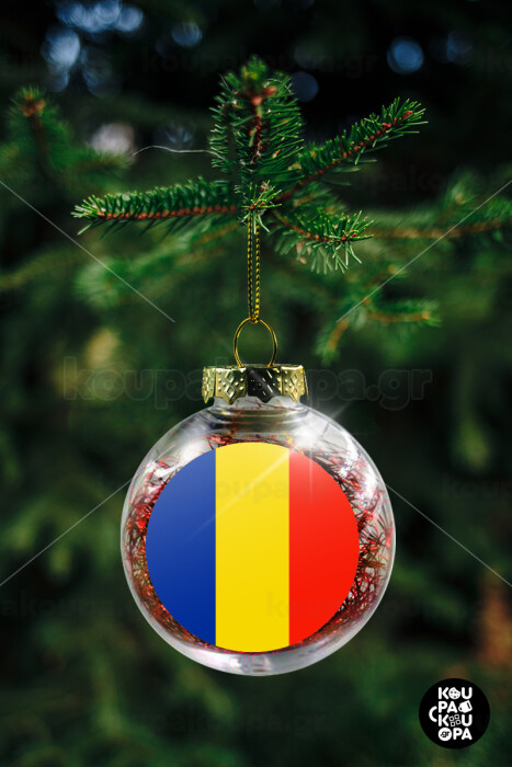Romania flag, Transparent Christmas tree ball ornament with red filling 8cm