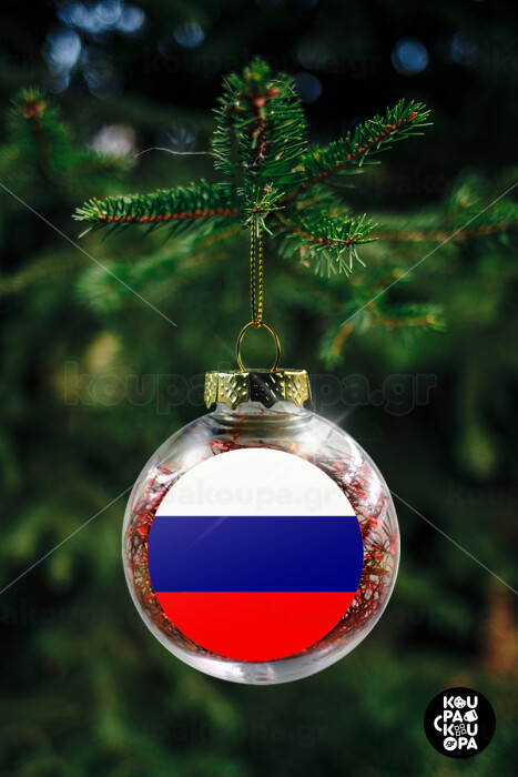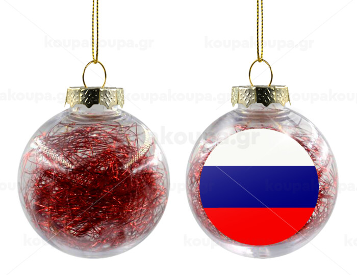 Russia flag, Transparent Christmas tree ball ornament with red filling 8cm