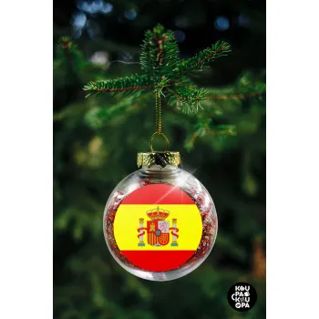 Spain flag, Transparent Christmas tree ball ornament with red filling 8cm