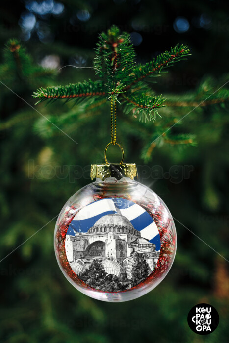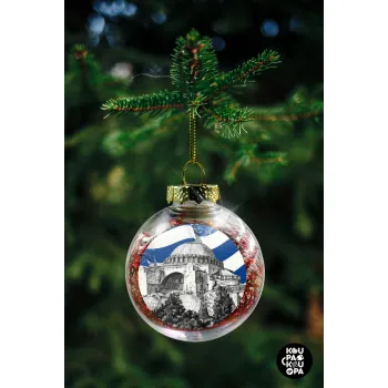 Αγία Σοφιά Ελληνική σημαία, Transparent Christmas tree ball ornament with red filling 8cm