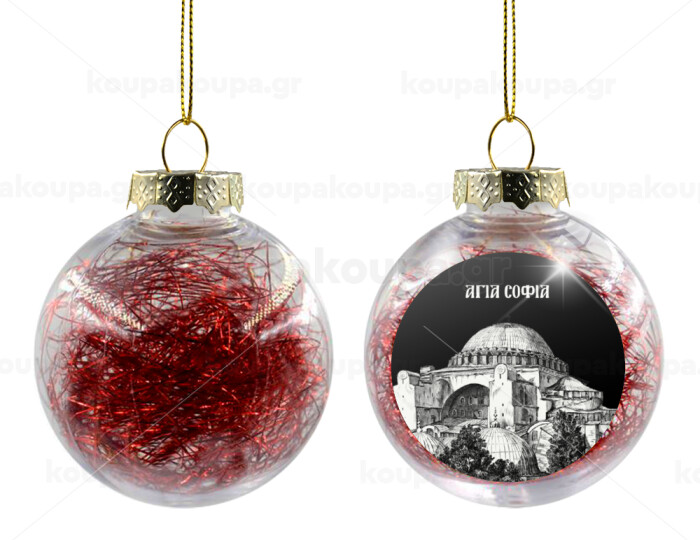 Αγία Σοφιά, Transparent Christmas tree ball ornament with red filling 8cm