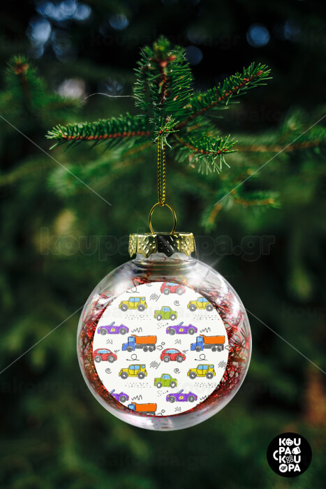 Colorful cars, Transparent Christmas tree ball ornament with red filling 8cm