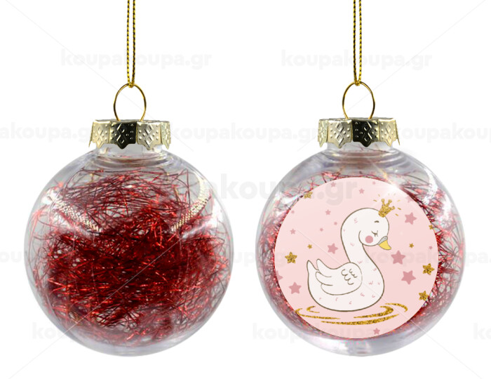 Crowned swan, Transparent Christmas tree ball ornament with red filling 8cm