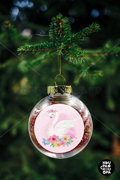 White swan, Transparent Christmas tree ball ornament with red filling 8cm