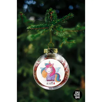 Pink unicorn, Transparent Christmas tree ball ornament with red filling 8cm