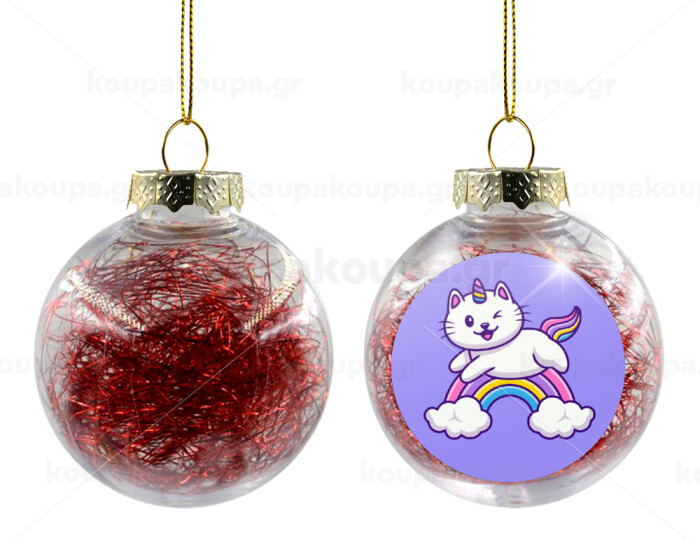 Cute cat unicorn, Transparent Christmas tree ball ornament with red filling 8cm