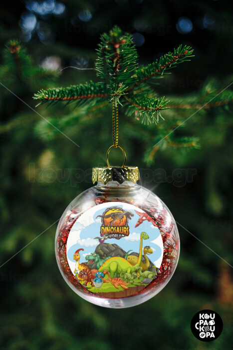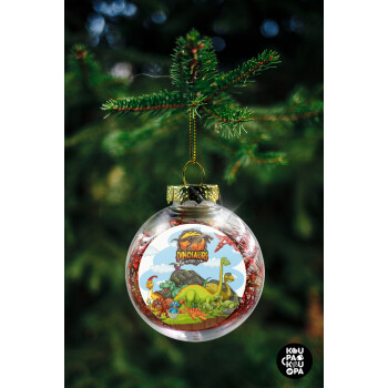 Dinosaur's world, Transparent Christmas tree ball ornament with red filling 8cm