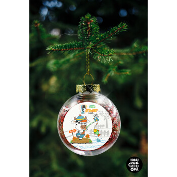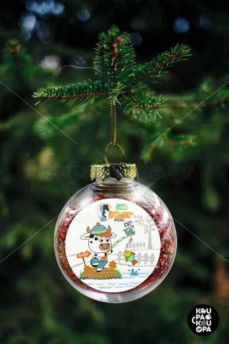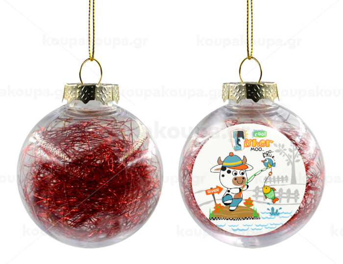 Kids Fisherman, Transparent Christmas tree ball ornament with red filling 8cm