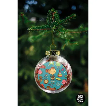 Toys Girl, Transparent Christmas tree ball ornament with red filling 8cm