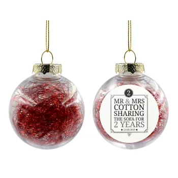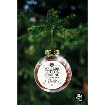 Mr & Mrs Sharing the sofa, Transparent Christmas tree ball ornament with red filling 8cm
