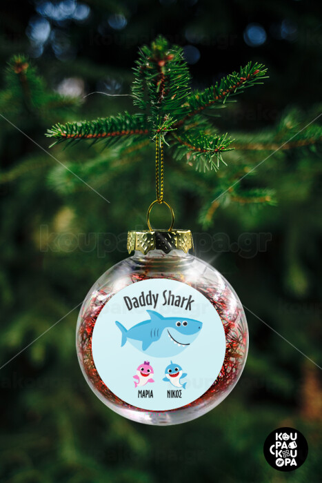 Daddy Shark (με ονόματα παιδικά), Transparent Christmas tree ball ornament with red filling 8cm