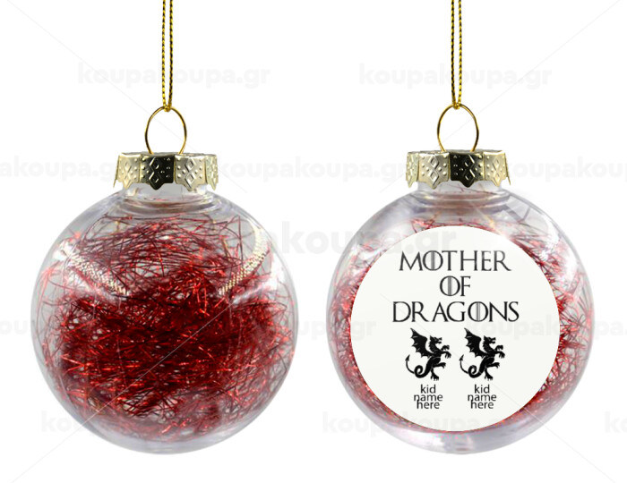 GOT, Mother of Dragons (με ονόματα παιδικά), Transparent Christmas tree ball ornament with red filling 8cm