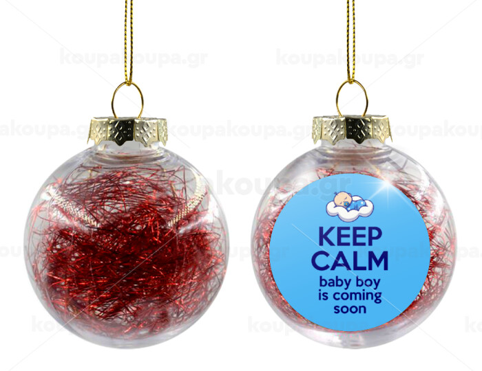 KEEP CALM baby boy is coming soon!!!, Transparent Christmas tree ball ornament with red filling 8cm
