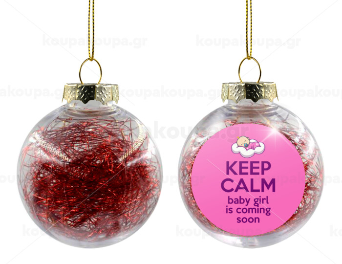 KEEP CALM baby girl is coming soon!!!, Transparent Christmas tree ball ornament with red filling 8cm