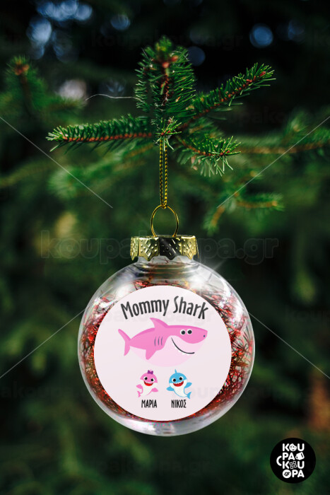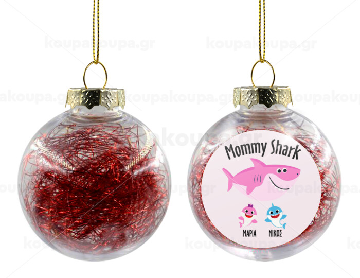 Mommy Shark (με ονόματα παιδικά), Transparent Christmas tree ball ornament with red filling 8cm