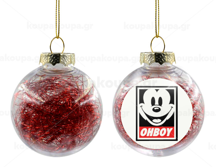 Oh boy μίκυ, Transparent Christmas tree ball ornament with red filling 8cm