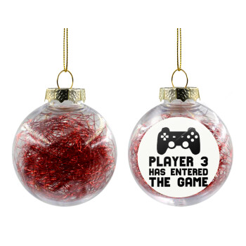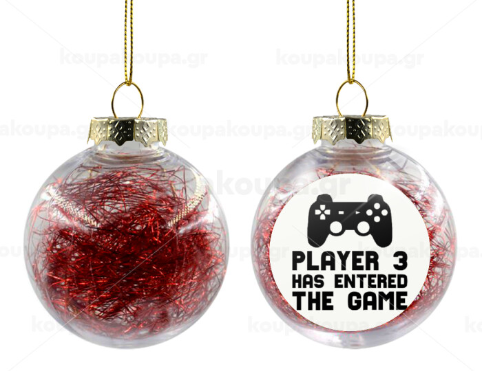 Player 3 has entered the Game, Transparent Christmas tree ball ornament with red filling 8cm