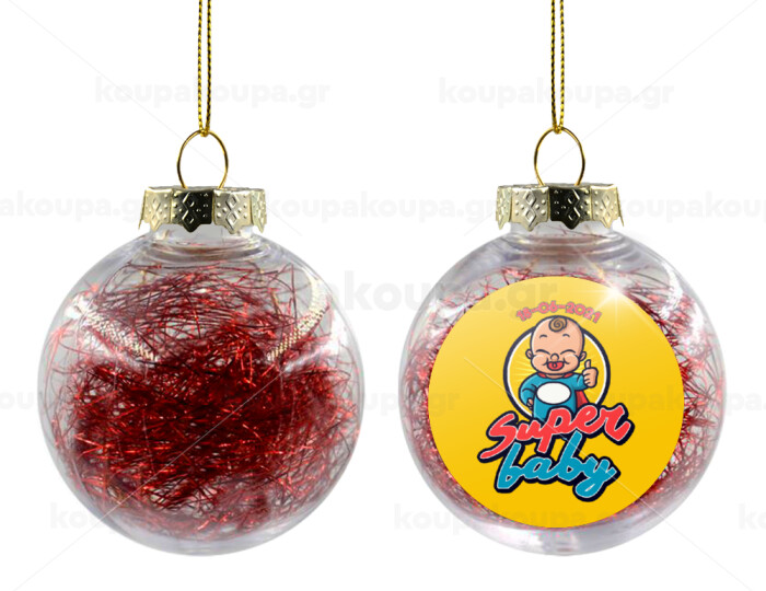 Super baby., Transparent Christmas tree ball ornament with red filling 8cm