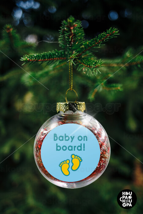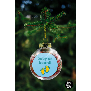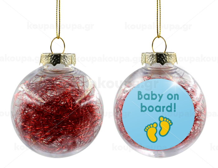 Baby on Board πατουσα Αγόρι, Transparent Christmas tree ball ornament with red filling 8cm