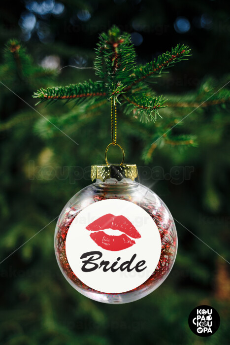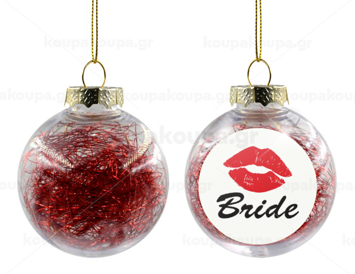 Bride kiss, Transparent Christmas tree ball ornament with red filling 8cm