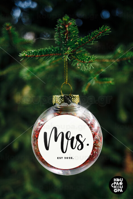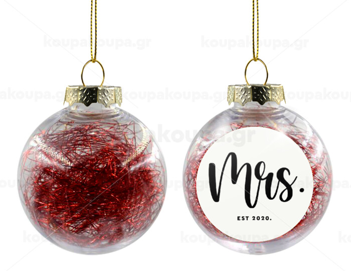 Mr & Mrs (Mrs), Transparent Christmas tree ball ornament with red filling 8cm