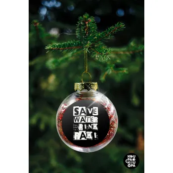Save Water, Drink RAKI, Transparent Christmas tree ball ornament with red filling 8cm