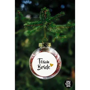 Team Bride, Transparent Christmas tree ball ornament with red filling 8cm