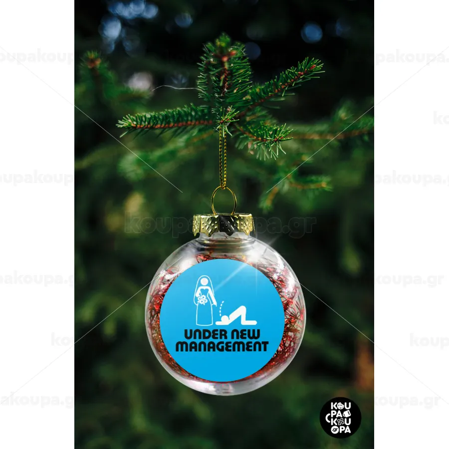 Under new Management, Transparent Christmas tree ball ornament with red filling 8cm