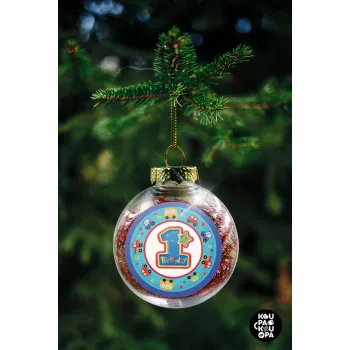 Happy 1st Birthday, Transparent Christmas tree ball ornament with red filling 8cm