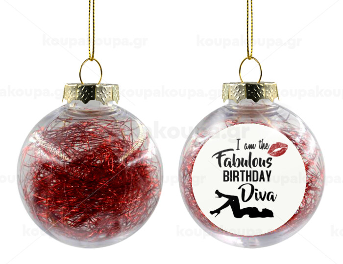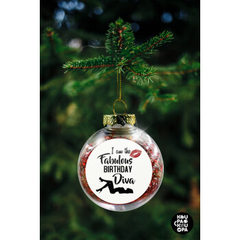 I am the fabulous Birthday Diva, Transparent Christmas tree ball ornament with red filling 8cm