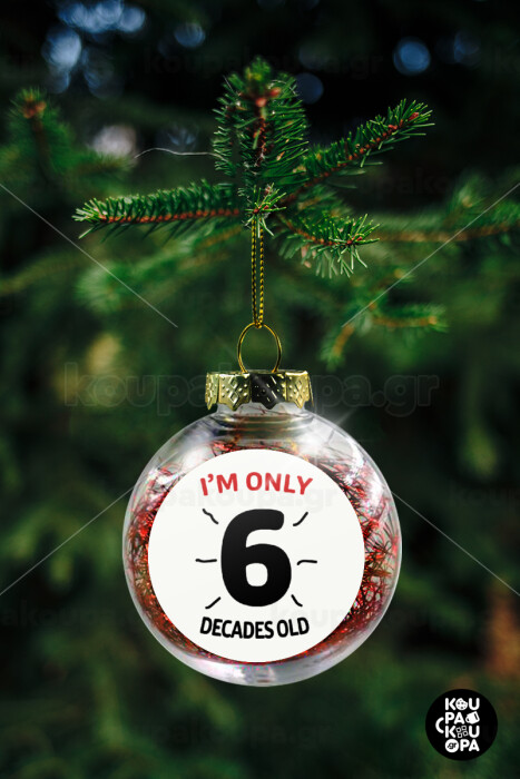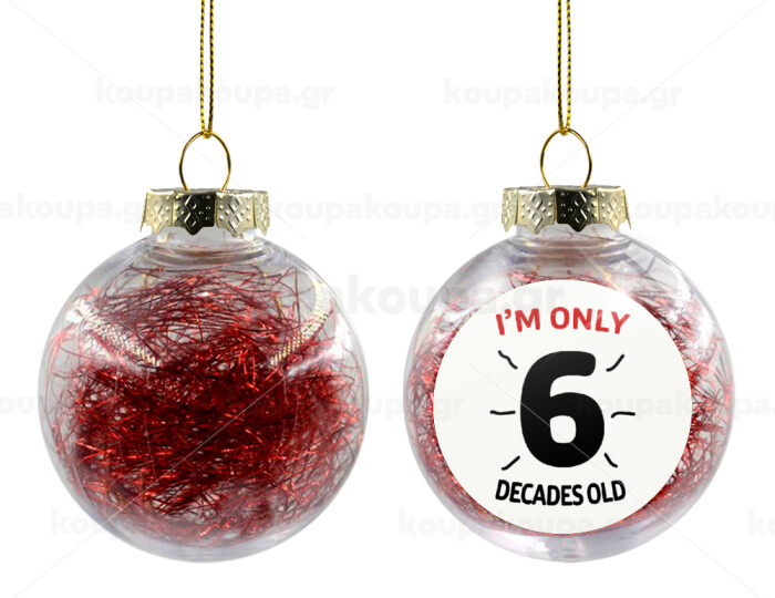 I'm only NUMBER decades OLD, Transparent Christmas tree ball ornament with red filling 8cm