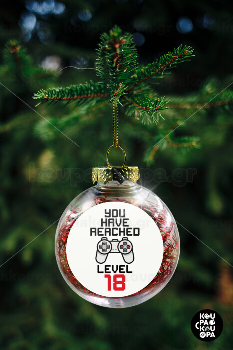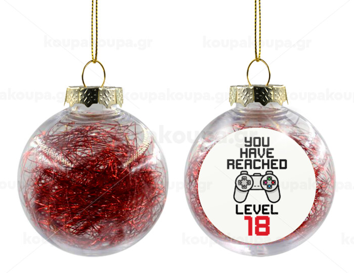 You have Reached level AGE, Transparent Christmas tree ball ornament with red filling 8cm
