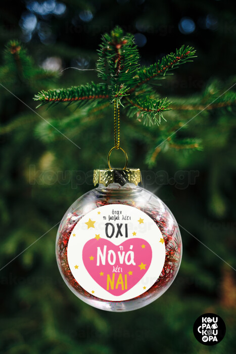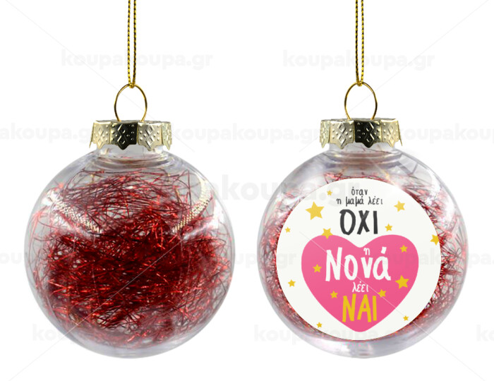 Η νονά λέει ναι!!!, Transparent Christmas tree ball ornament with red filling 8cm
