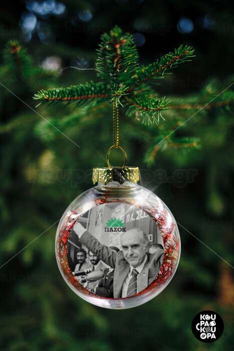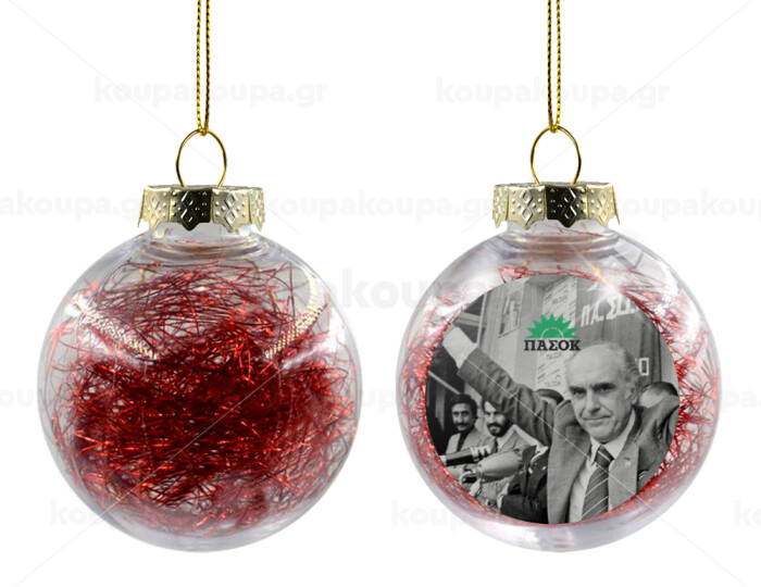 ΠΑΣΟΚ Ανδρέας, Transparent Christmas tree ball ornament with red filling 8cm