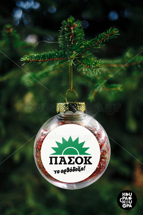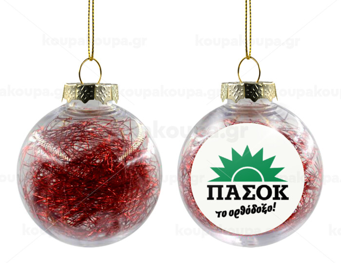 PASOK the orthodoxo, Transparent Christmas tree ball ornament with red filling 8cm