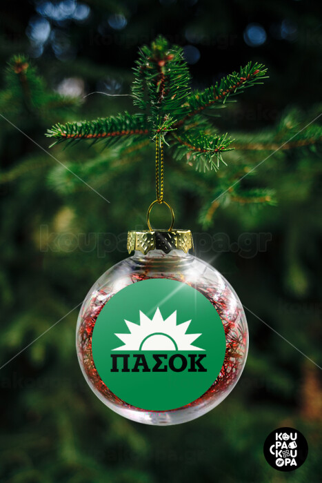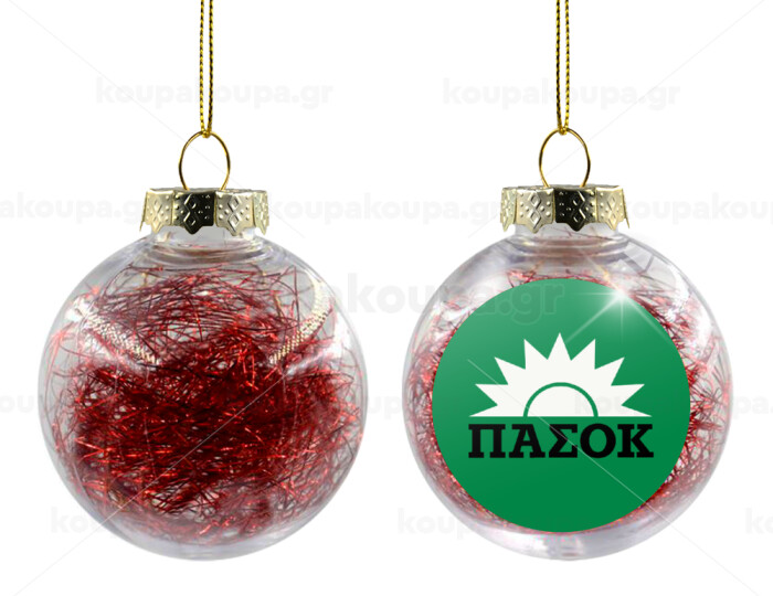 PASOK green, Transparent Christmas tree ball ornament with red filling 8cm