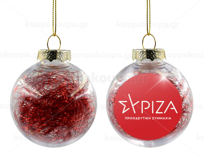Σύριζα το νέο, Transparent Christmas tree ball ornament with red filling 8cm