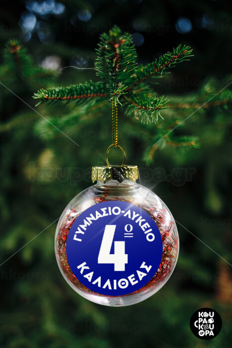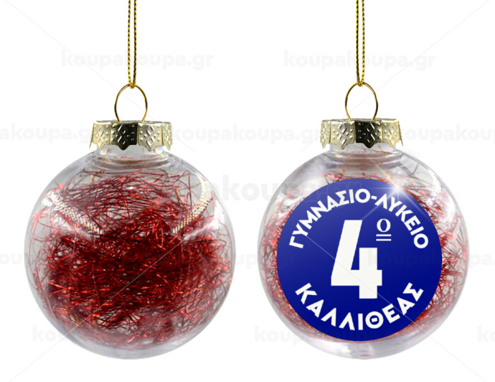 Έμβλημα Σχολικό μπλε κλασικό, Transparent Christmas tree ball ornament with red filling 8cm