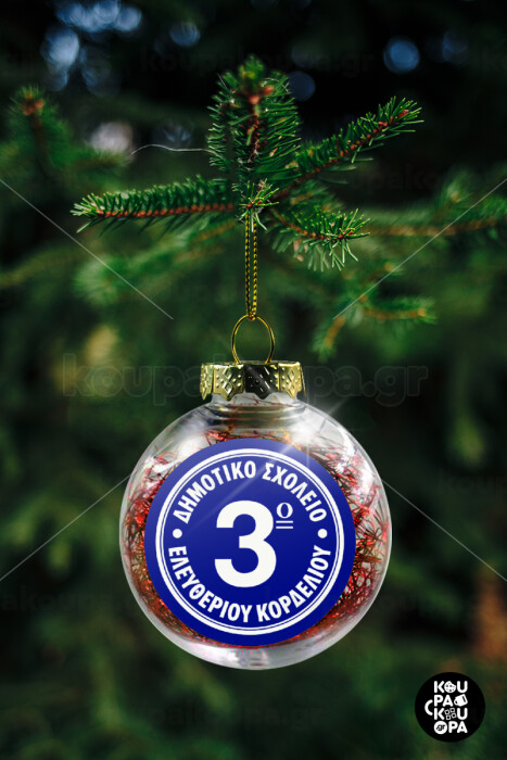 Έμβλημα Σχολικό μπλε, Transparent Christmas tree ball ornament with red filling 8cm