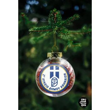 Έμβλημα Σχολικό μπλε owl, Transparent Christmas tree ball ornament with red filling 8cm