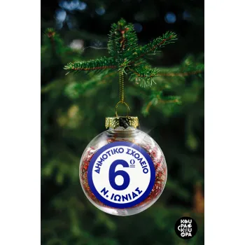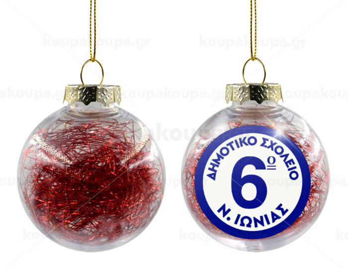 Σχολικό σήμα κλασικό μπλε, Transparent Christmas tree ball ornament with red filling 8cm