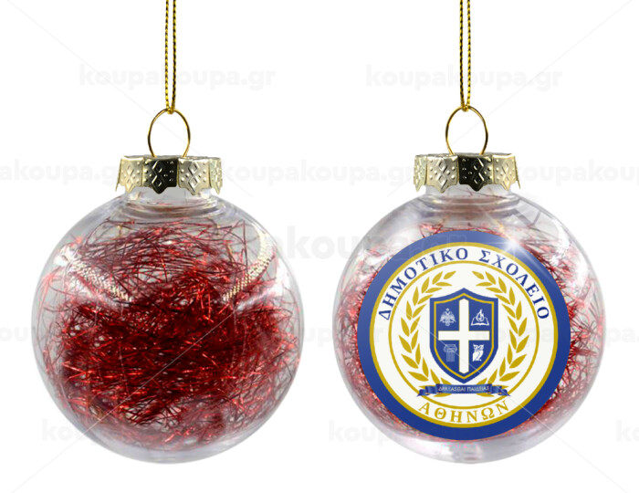 Σχολικό σήμα, Transparent Christmas tree ball ornament with red filling 8cm