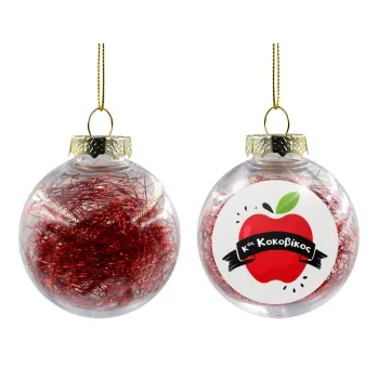 Αναμνηστικό Δώρο Δασκάλου Κόκκινο Μήλο, Transparent Christmas tree ball ornament with red filling 8cm