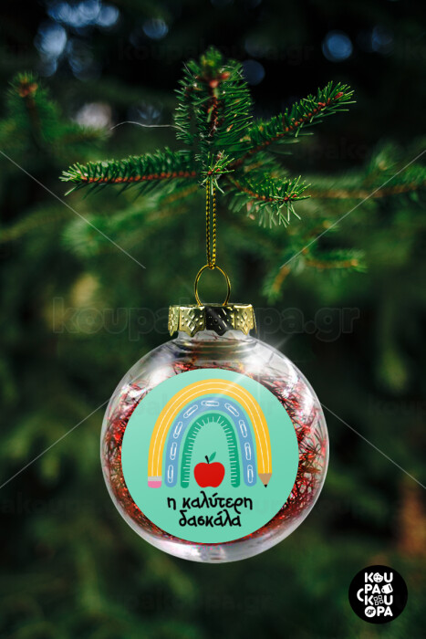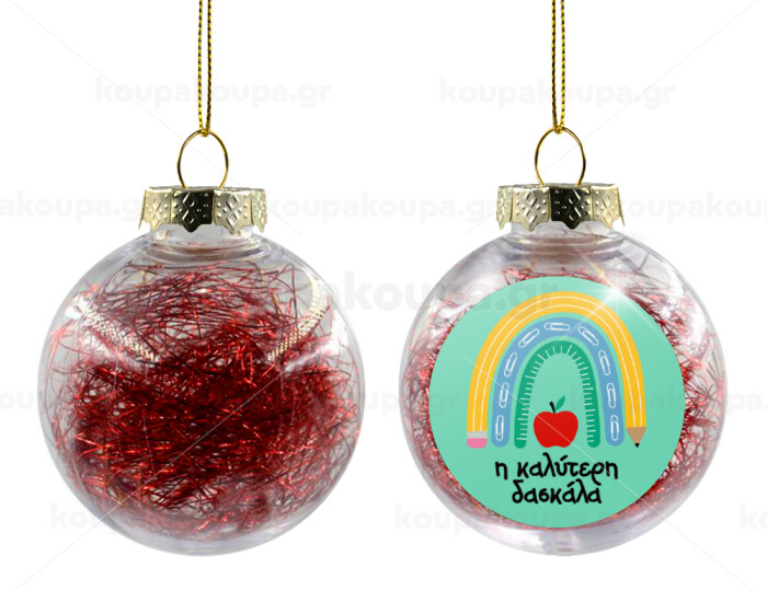Η καλύτερη δασκάλα, Transparent Christmas tree ball ornament with red filling 8cm